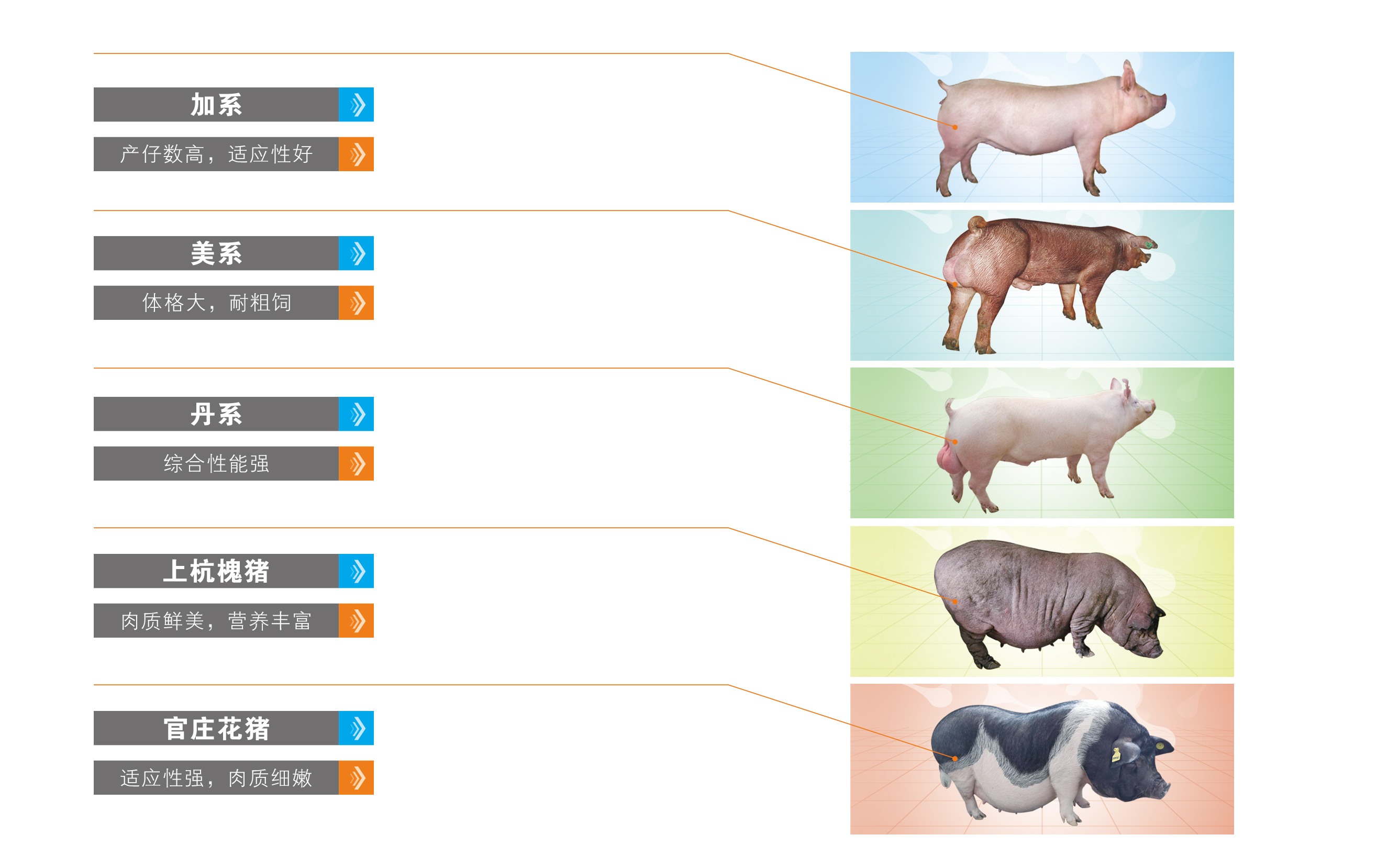 集团拥有美系、加系和丹系等“基因” 优良的种猪品系,在全国大部分猪饲养较为集中的地区布局了种猪育种繁育基地,能够便捷快速地为养猪户提供优质种猪。同时,集团还积极承担上杭槐猪和官庄花猪2个地方猪的保种及产业化发展的责任。